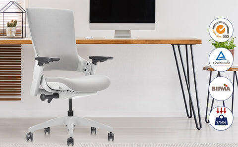 Ergonomic High Swivel Executive Home Office Chair Grey Fabric Back