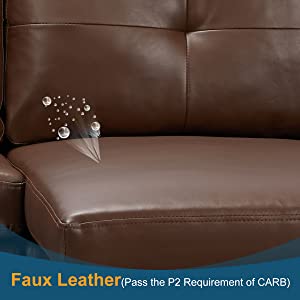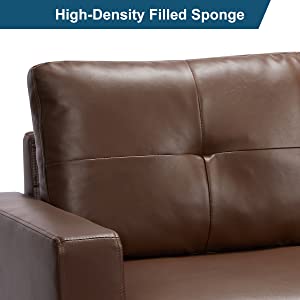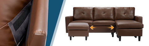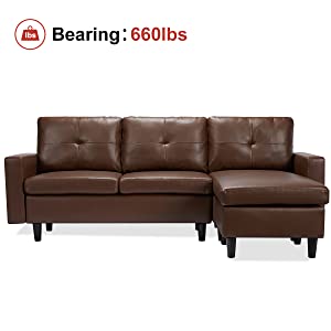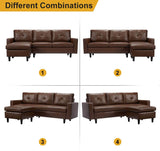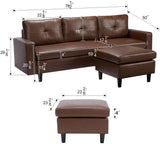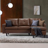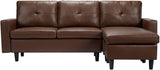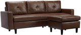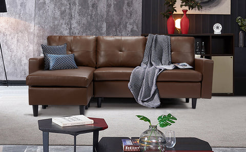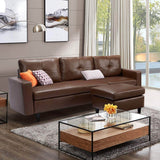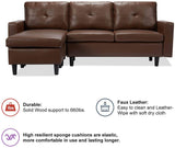 Faux Leather Sectional Sofa Convertible Couch Brown Leather L-Shape Couch for Small Space Apartment