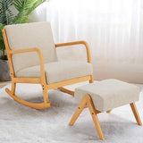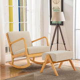 Fabric Rocking Chair, Mid-Century Glider Rocker with Padded Seat, with Ottoman, Seat Wood Base, Linen Accent Chair for Living Room