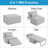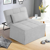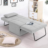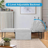 Folding Ottoman Sleeper Guest Bed, 4 in 1 Multi-Function Adjustable Guest Sofa Chair Sofa Bed with Pillow, Light Gray