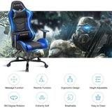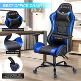 Gaming Chair Massage Ergonomic Office Chair High Back Computer Chair Racing PU Leather Recliner with Headrest & Lumbar Pillow, Black & Blue