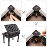 29'' Genuine Leather Piano Bench with Storage, Adjustable Duet Size Artist Concert Piano Bench Stool, Black