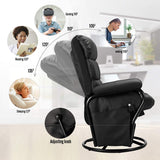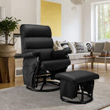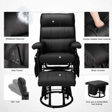 Glider Recliner with Ottoman, Swivel Glide Chair, Faux Leather Lounge Recliner with Footrest, Vibration Massage Lounge Chair with Side Pocket, Black