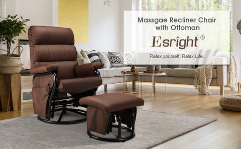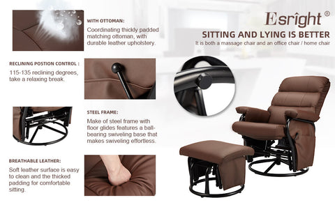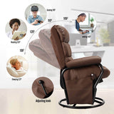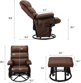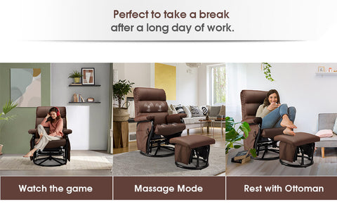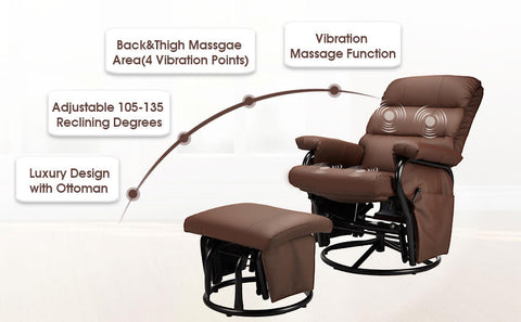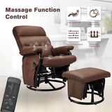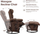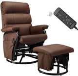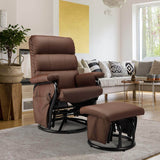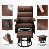 Glider Recliner with Ottoman, Swivel Glide Chair, Faux Leather Lounge Recliner with Footrest, Vibration Massage Lounge Chair with Side Pocket, Brown
