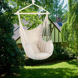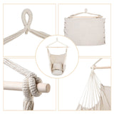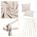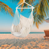 Hammock Swing, Hanging Rope Hammock Chair, Cotton Hanging Air Swing with Cushions for Porch Yard Tree Bedroom, Beige