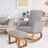 Home Ottoman, Modern Upholstered Bench, Linen Comfortable Foot Rest Stool, Mid Century Retro Footstool, Gray