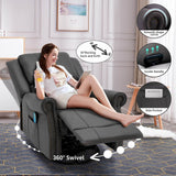 Massage Recliner Chair Breathe Faux Leather Ergonomic Lounge Heated Chair(Dark Grey)
