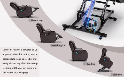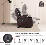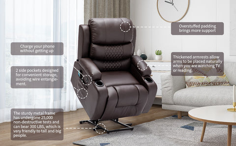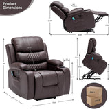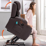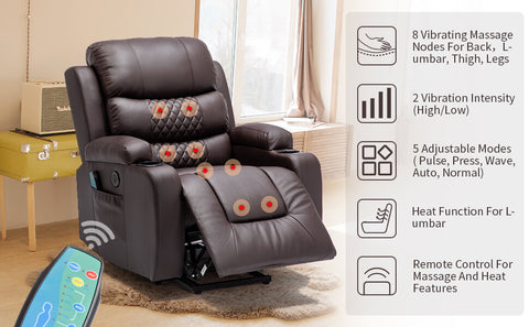 Power Lift Recliner Chair with Heated & Vibration Massage for Elderly, PU Leather Electric Recliner Sofa with Diamond Lattice Backrest Design(Brown)