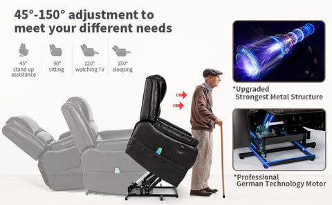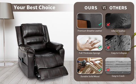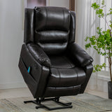 Power Lift Recliner Chair with Massage & Heat for Elderly, Breath Leather Electric Recliner with 2 Side Pocket & USB Port (Coffee)