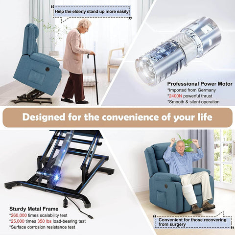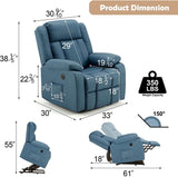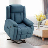 Power Lift Recliner Chair with Massage & Heat, Linen Fabric Electric Recliner Lift Chair with 2 Side Pockets & USB Port (Peacock Blue)