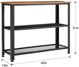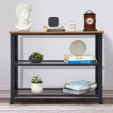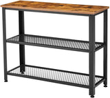 Industrial Console Table, Hallway Table with 2 Mesh Shelves, Sofa Table for Living Room Bedroom Entryway Study Balcony Hallway Workshop, Easy Assembly