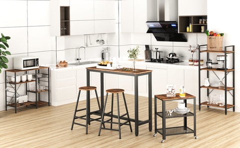 Industrial Kitchen Cart 3-Tier, Rolling Serving Cart on Wheels with Storage, Microwave Cart for Kitchen, Vintage Brown