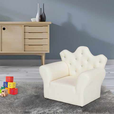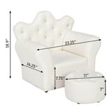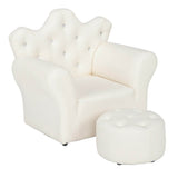 Kids Sofa With Upholstered Armchair with Ottoman Embedded Crystal White
