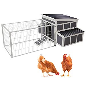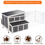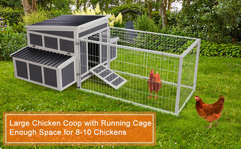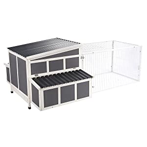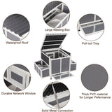 Large Chicken Coop Wooden Cage With Playpen Gray