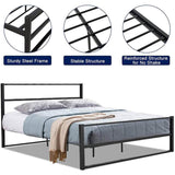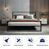 Metal Bed Frame Queen Size Heavy Duty Platform with Headboard