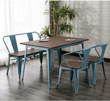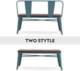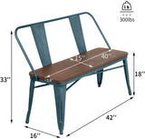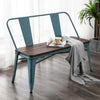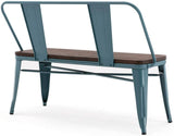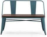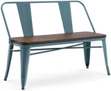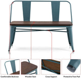 Homhum Metal Bench Industrial Mid-Century 2 Person Chair with Wood Seat, Dining Bench with Floor Protector, Blue