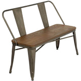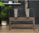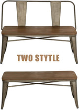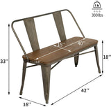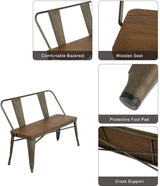 Homhum Metal Bench Industrial Mid-Century 2 Person Chair with Wood Seat, Dining Bench with Floor Protector, Copper