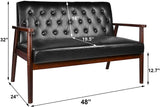 Mid-Century Accent Chair Retro Faux Leather Upholstered Wooden Lounge Chair Black Set