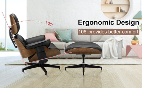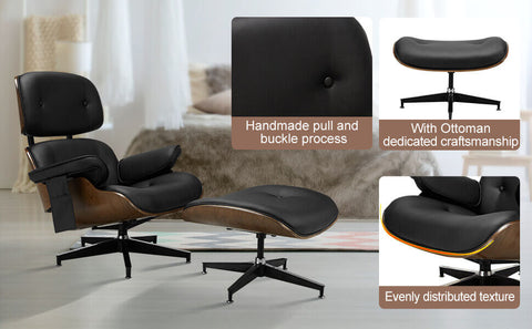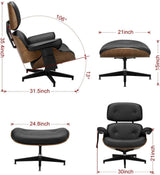 Mid Century Lounge Chair with Ottoman, Classic Lounge Chair Premium Faux Leather with Light Vibration Massage Function and Storage Bag(Black)
