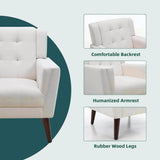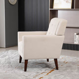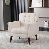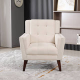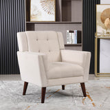 Mid-Century Modern Fabric Club Chair, Single Sofa Comfy Upholstered Arm Chair with Tufted Design, Beige