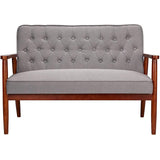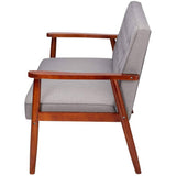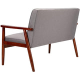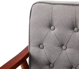 Mid-Century Retro Fabric Loveseat Accent Chair Tufted Back Living Room Sofa Wooden Arm Chair Grey