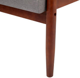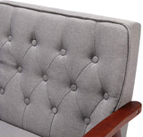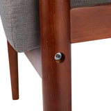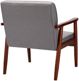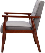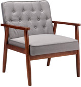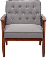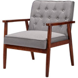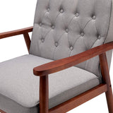 Mid-Century Retro Lounge Accent Chair Faux Leather Tufted Back Wooden Arm Chair Grey Fabric