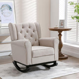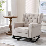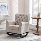 Mid Century Modern Rocking Chair, Tufted Upholstered Glider with High Back, Beige