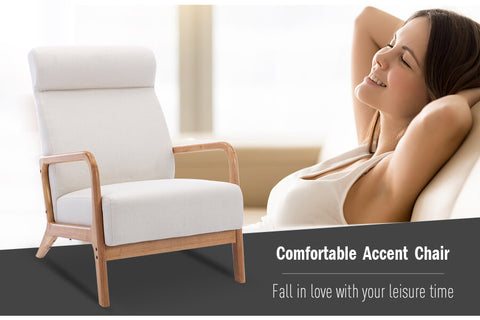 Mid-Century Upholstered Accent Chair with Thick Padded Cushion & Pillow, Lounge Arm Chair for Living Room