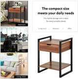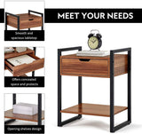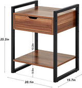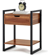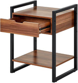 Modern Rectangular Wood Nightstand Side/End/Coffee/Accent Table, Cabinet with Drawer for Storage, Brown