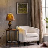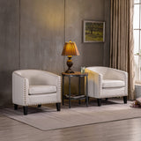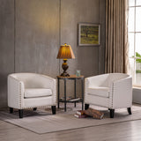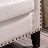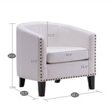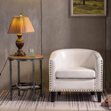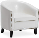 Modern Tub Barrel Accent Chair Upholstered Faux Leather with Nail Head, White