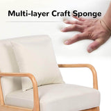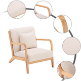 Lounge Arm Chair Mid Century Modern Accent Chair Wood Frame Armchair, Beige