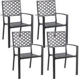 Outdoor Patio Dining Chairs, Stackable Arm Chairs-Metal Frame