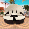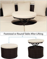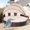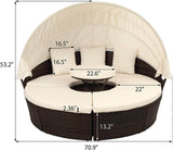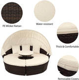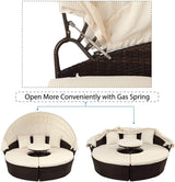 Patio Round Daybed Furniture Set with Retractable Canopy, Coffee Table & Cushions, Outdoor Wicker Rattan Sectional Sofa Set, Beige