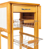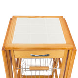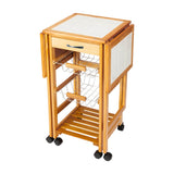 Portable Rolling Drop Leaf Kitchen Storage Trolley Cart Island Sapele Color