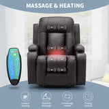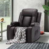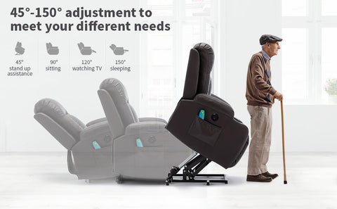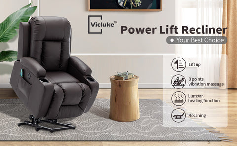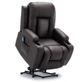 Power Lift Recliner Chair with Massage & Heat for Elderly, PU Leather Electric Recliner with 2 Side Pockets, Cup Holders & USB Port (Brown)