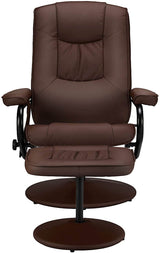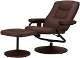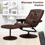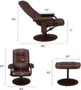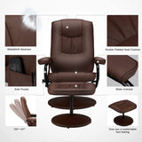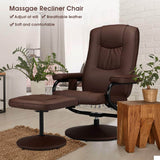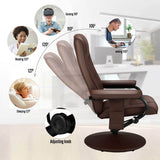 Recliner Chair and Ottoman, 360 Degrees Swivel Ergonomic Faux Leather Lounge Recliner with Footrest, Vibration Massage Lounge Chair with Side Pocket, Brown