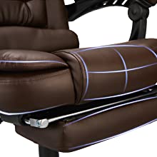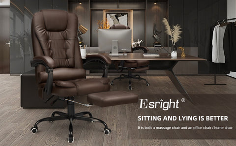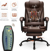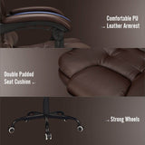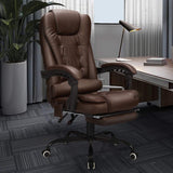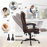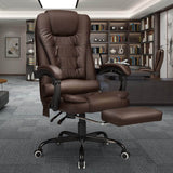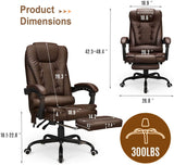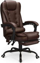 Reclining Leather Office Chair with Retracable Footrest, Ergonomic High Back Executive Adjustable Office Chair (Brown)