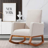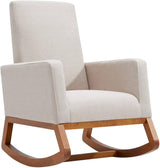 Rocking Chair Mid Century Accent Chair Glider Rocker, Seat Wood Base, High Back Linen Armchair, Beige