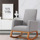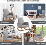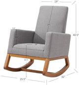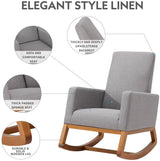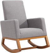 Rocking Chair Mid Century Accent Chair Glider Rocker, Seat Wood Base, High Back Linen Armchair, Gray