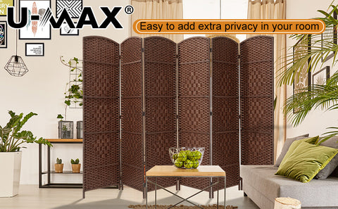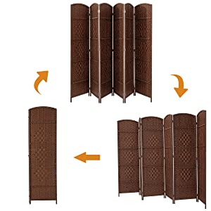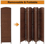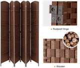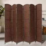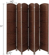 Room Divider,6 FT Tall Weave Fiber Room Divider,Double Hinged, 6 Panel Room Divider & Folding Privacy Screens, Freestanding Brown Room Dividers