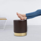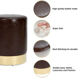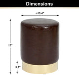 Round PU Leather Ottoman Foot Stool Footrest, Soft Compact Padded Stool, Living Room Bedroom Decorative Furniture, Brown