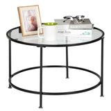 Round Wrought Iron Coffee Table 2 Layers Tempered Glass Countertops Black 36 Inches