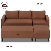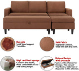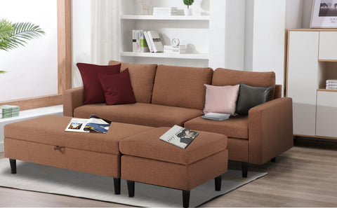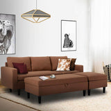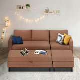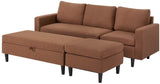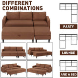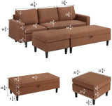 Sectional Sofa with Ottoman and Chaise Lounge, 3-Seat Living Room Furniture Sets, L-Shape Couch Sofa for Living Room, Brown