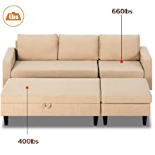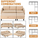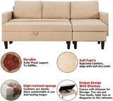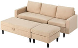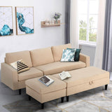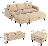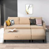 Sectional Sofa with Ottoman and Chaise Lounge, 3-Seat Living Room Furniture Sets, L-Shape Couch Sofa for Living Room, Light Beige