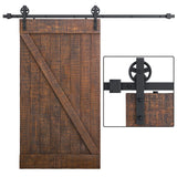 Single Door Hardware Basic Black Big Spoke Wheel Roller Kit 5-10 FT
