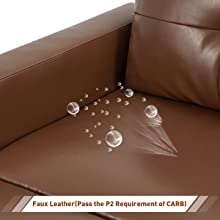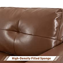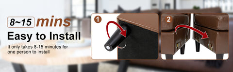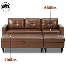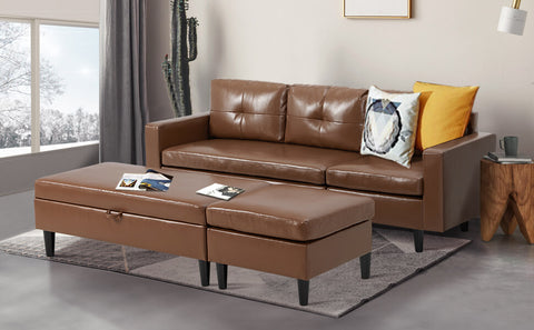 Small Faux Leather Sectional Sofa with Storage Ottoman and Chaise Lounge, 3-Seat Living Room Furniture Sets for Small Apartment, Brown