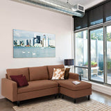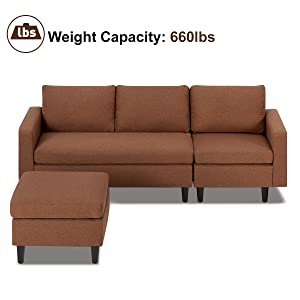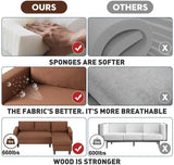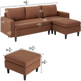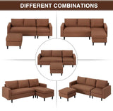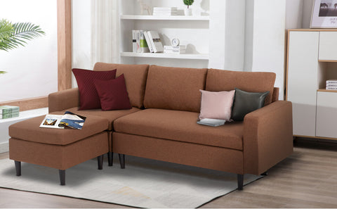 Small Sectional Sofa Couch Small 3 Piece Living Room Convertible Couch Linen Fabric L-Shape Couch with Chaise Lounge for Small Space Apartment, Brown
