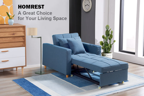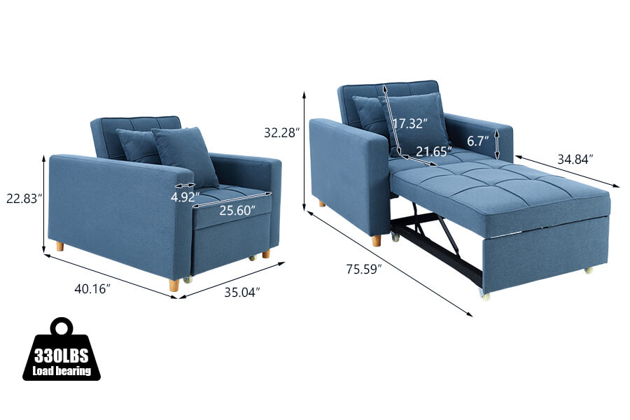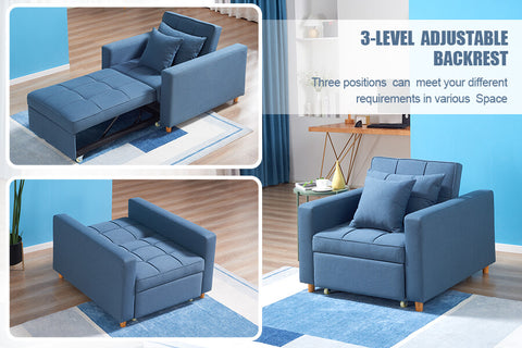 Sofa Bed 3-in-1 Convertible Chair Multi-Functional Sofa Bed Adjustable Recliner(Blue Grey)
