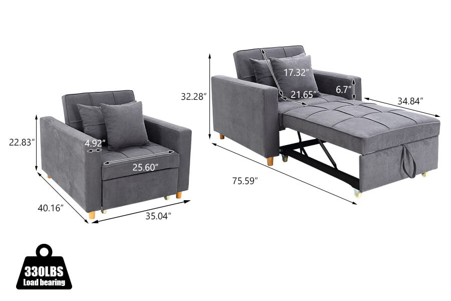 Sofa Bed 3-in-1 Convertible Chair Multi-Functional Sofa Bed Adjustable Recliner(Dark Grey)