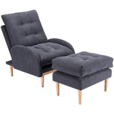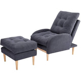 Sofa Chair with Ottoman Fabric Lounge Recliner Adjustable Backrest Grey Blue